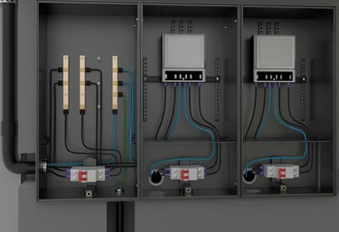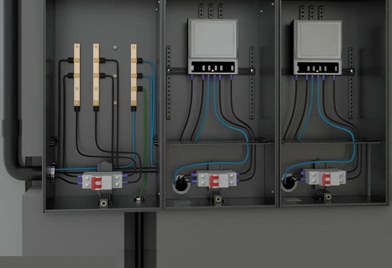 Soluções para residências individuais e edificações onde a distribuição elétrica é centralizada para unidades autônomas e áreas comuns, promovendo eficiência e segurança.